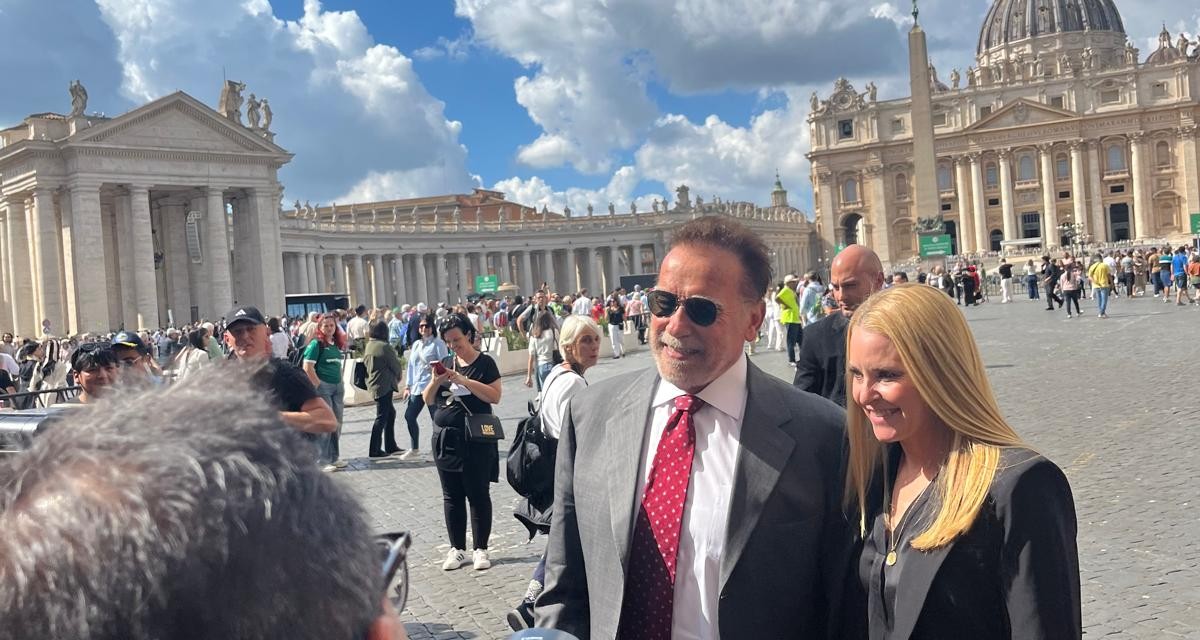 Schwarzenegger meets Pope Leo XIV at Raising Hope Conference